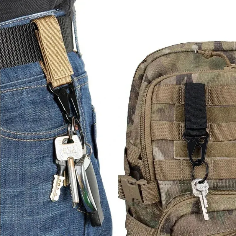 2pcs Tactical Hanging Buckle Molle Nylon Webbing Carabiner Belt Triangle Keychain for Outdoor Climbing Camping Tool Accessory